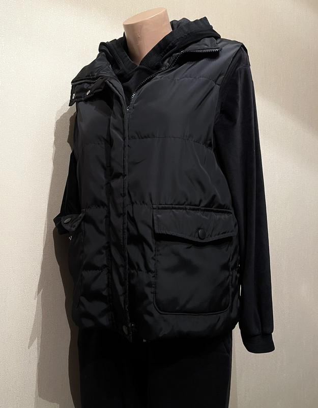 Жилет жилетка на молнии черная без капюшона. Глубокие удобные большие карманы на кнопках . Размер 46 Л . Можно на 44-46 . Состояние все целое без дефектов , оделась мало. Замеры длина 65 см, подмышки 53 см, по низу 55 см Новая почта полная оплата/предоплата 200грн Укрпочта полная оплата