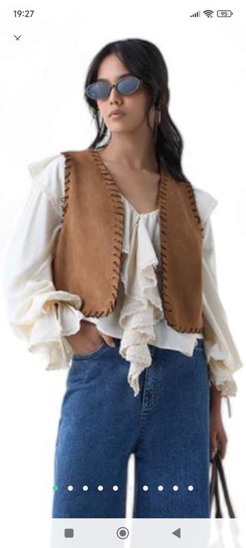 Новий бомбезний жіночій вкорочений жилет під замшу в стилі вестерн бренду New Look. Сток, з паперовими етикетками. Виглядає супер. 96% поліестер, 4% еластан. Підкладка 109% поліестер. Розмір UK 12 EU 40 НОГ 47 см НОТ 46 см Довжина по спині 44 см