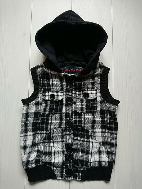 Безрукавка жилет фірми Check me out У гарному стані З капюшоном Матеріал поліестр Обрізана етикетка Довжина від плеча 52 см, В плечах 34 см, Напівобхват грудей 42 см