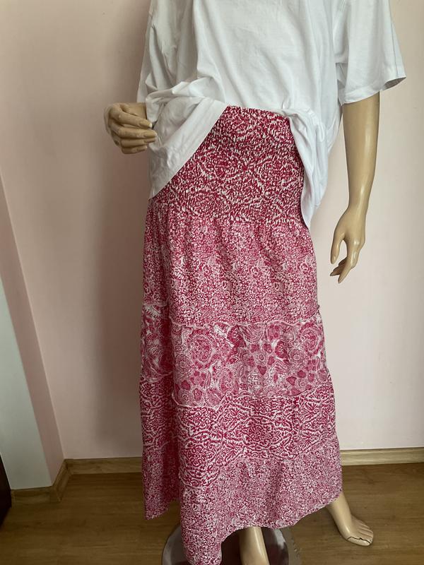 Широка резинка . Шлярки . Без дефектів . Заміри в талії 44-50 см в бедрах 60 см довжына 103см 17:5:23