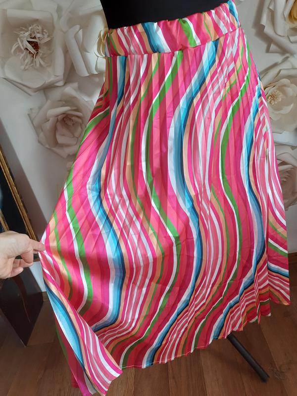 спідниця плісе в яскраві розводи, на вигляд як шовк.