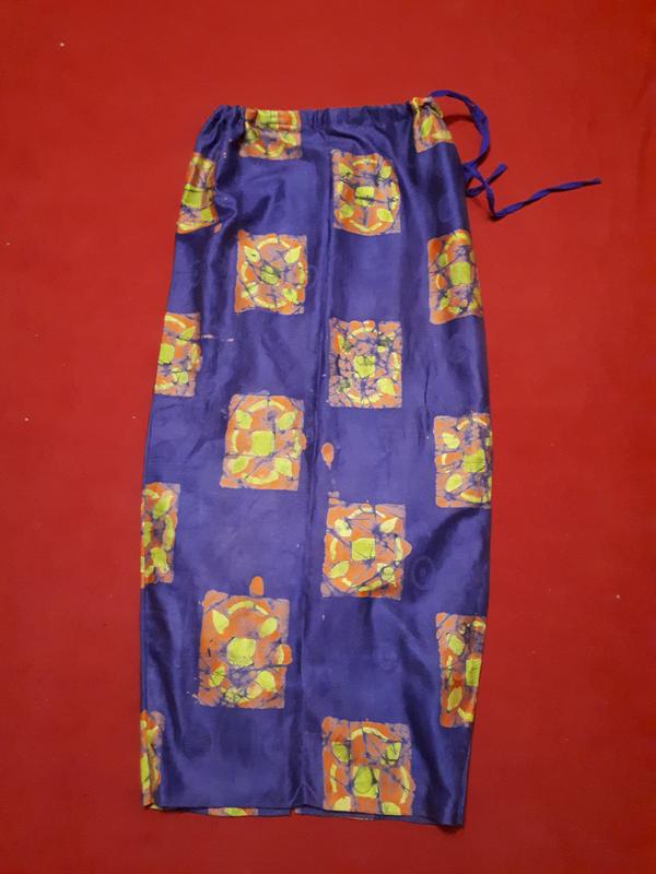 ручна робота , на мій погляд бавовна , силует звужений до низу з глибоким розрізом 50 см, підкладка Довжина 104 пот 56 ( стягується шнуром ) поб 55 ширина низу 43 шви не зрізана, можна зробити спідницю прямого силуету. Дивись інші мої пропозиції