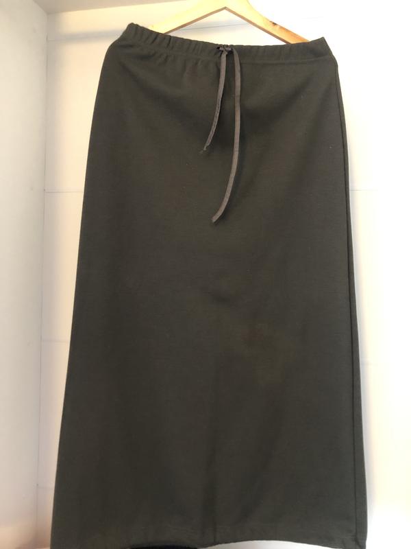 Спідниця трикотаж темно зелена ширина по талії 90 см по стегнах 110 см довжина 98 см