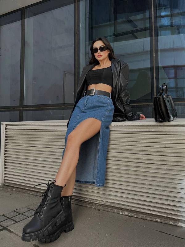 Джинсові спідниці з розрізом 🖤 • матеріал: котон • розміри: 34, 36, 38, 40 • кольори: чорний, синій • довжина: 83 см, довжина до розрізу 36 см Ціна 950 грн🏷️ 34 — напівобхват талії 32 см, напівобхват бедер 43 см 36 — напівобхват талії 33 см, напівобхват бедер 44 см 38 — напівобхват талії 34 см, напівобхват бедер 46 см 40 — напівобхват талії 37 см, напівобхват бедер 48 см