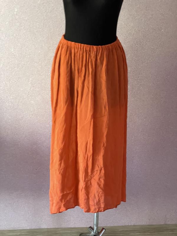 В хорошому стані Збоків розріз Є кишені На резинці У складі натуральна тканина. Пот 33/54 см Пос до 68 см Довжина 85/98 см Позаду довша Колір як на першому фото