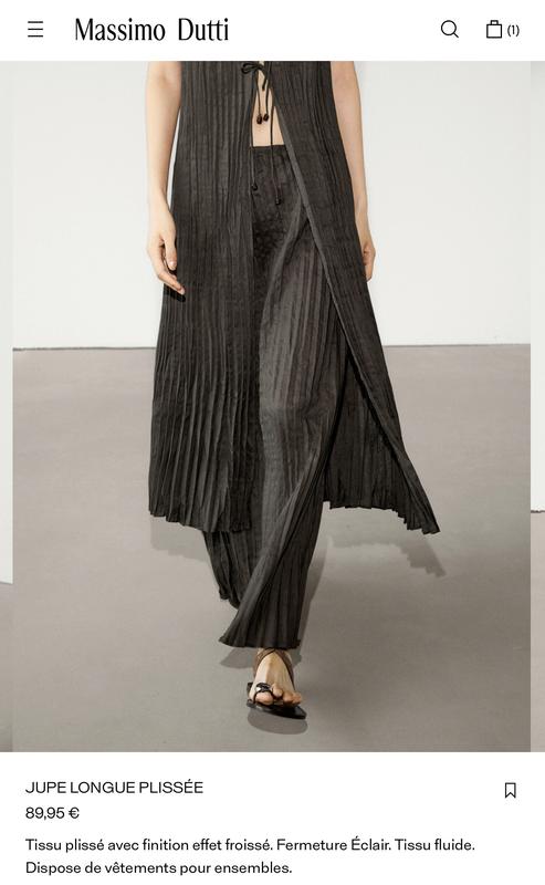 Плісирована тканина з жатим ефектом. Застібається на блискавку. Струмуюча тканина. Спідниця midi Massimo Dutti р М, довжина 90 см. Купляла в Парижі 89,95€. Шикарна! Не вдівана!