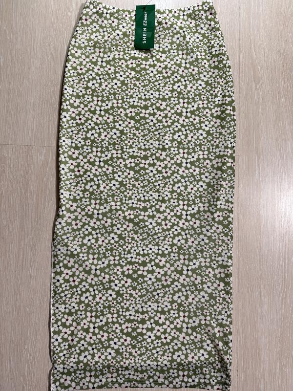 В наявності гарна спідниця фірми Shein. Розмір вказаний XS. Склад: 95% поліестеру та 5% еластану, тканина м'яка та приємна до тіла, добре тягнеться. Спідниця має підкладку. Ширина в поясі — 31 см і ще добре тягнеться до 45 см Ширина в стегнах — 40 см і ще добре тягнеться Довжина спідниці — 82 см.