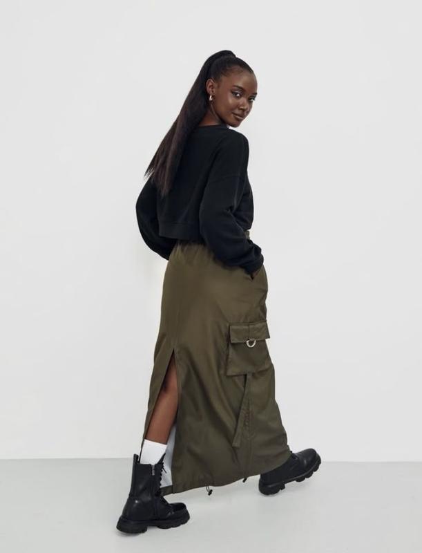 Спортивна спідниця максі кольору хакі з регулюванням шнура