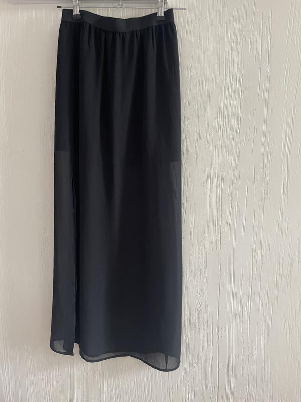 Дуже стильна модна прозора спідниця в ідеальному стані. З підкладкою (від талії до «вище колін»). Зборів розрізи. Не носилася. ПОТ - 32 (резинка), поб - 50 довжина підкладу - 35. Довжина виробу -100.