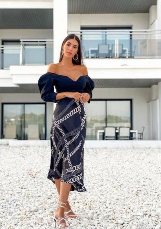Спідниця сатин в принт цепочек ZARA ✖️Розмір : М ✖️Стан: гарний ✖️Заміри: довжина 84, пот 36, поб 53, висока посадка , з боку на блискавці ✖️Слад :поліестер
