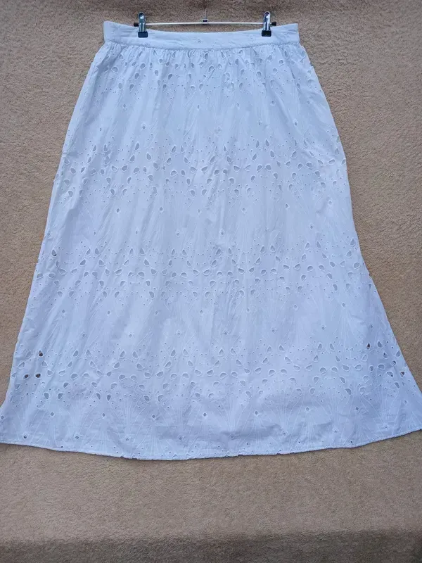 Суперскаская білосніжна спідниця в підлогу з прошви, бавовна, пояс ззаду гумка, тонкість підкладок бавовна, сталі ідеал НО пояс гумка 50-57, НО стегна 75, довжина 104 Замери відзнаки половина