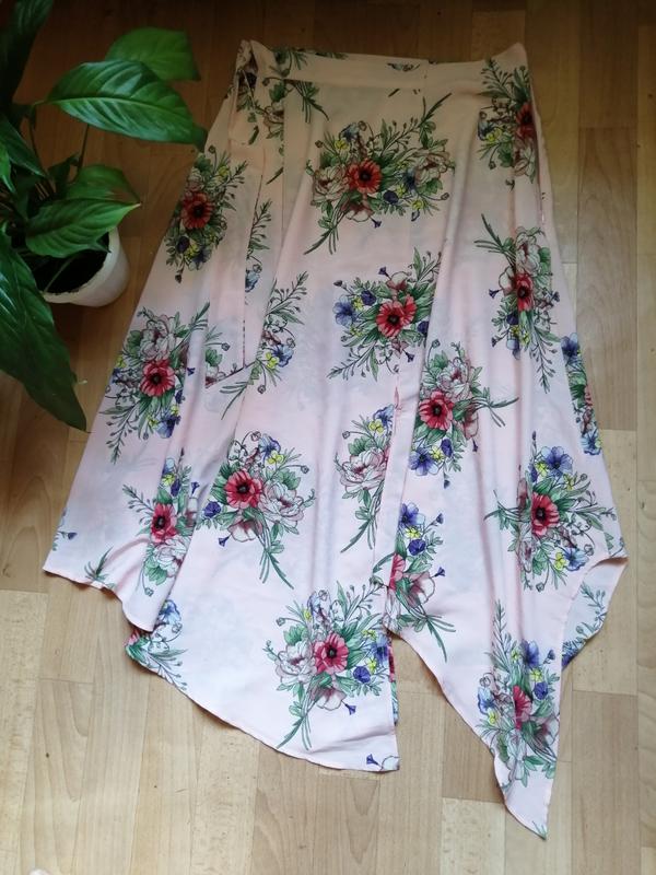 🔥🔥 ПОВНИЙ РОЗПРОДАЖ 🔥 Стан нової або нова Трендова асиметрична спідниця від Topshop, p 40. на фото одягнена на параметри 70-94-165 вона спущена нижче талії, бо велика колір ніжний пудровий з квітами. заміри : пот - 40 поб - вільно довжина 95, такі спідниці на Topshop від 600 грн. зайдіть на офіційний сайт і переконайтеся самі. поліестер , якісна, тканина не тягнеться.
