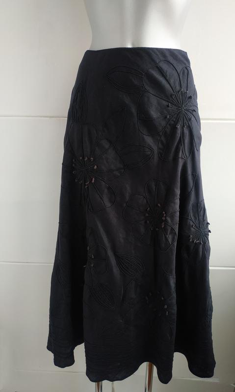 Льняна спідниця бренду класу люкс Jaeger (Єгер) чорного кольору з вишивкою красивих кольорів. ✨ Стан нової речі без дефектів. ✨ РОЗМІР 12 наш 48 ✨ Виміри довжина 85, піт 40, поб 57. ✨Jaeger (Єгер) - лондонський люксовий бренд з більш ніж стодвадцятип'ятирічної історією. У виробництві надається перевага матеріалам з натуральних волокон та розкішним тканинам. Чудова якість та винятковий крій – ось головні ознаки виробів Jaeger.