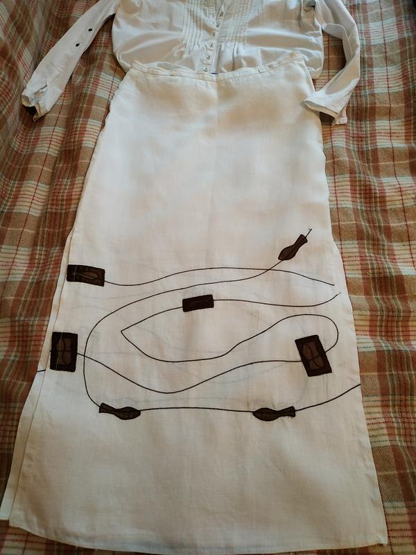 Юбка белая с вышивкой , лён . длина - 96 пот - 42 Поб - 50