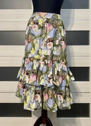 Красива спідниця відомого швецького бренду H&M. Застібається на блискавку збоку. Є два бічних кишені. Прикрашена двома оборками. Розмір 42, наш 48-50. Котон Виміри: Піт 41 Побіди вільна {до 62 см} Довжина виробу 82 Без торгу Дивіться всі мої оголошення