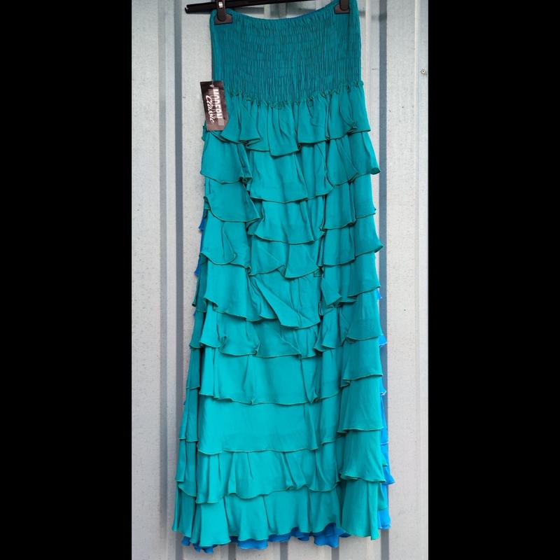 Спідниця штапельна воланами на підкладці, кокетка прошита на гумку завдяки якій можна піднімати на грудях носити як сарафан.