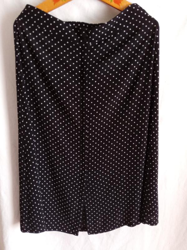 Чорна спідниця в мілкий білий горошок р.М, з переду маленька шліца.