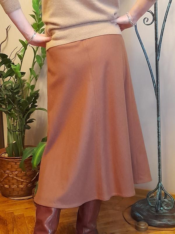 Юбка 51%шерсть с подкладкой очень красивого цвета молочного шоколада! состояние отличное модель универсальная! Подойдёт как в межсезонье так и зимой! В талии резинка длина миди фасон трапеция. Пишите сделаю доп.фото. Параметры юбки: Пот 38см Длина 75см