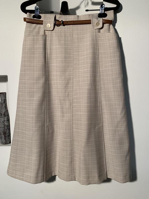 Состояние идеальное Нет следов носки 100% полиэстер Красивого натурального цвета Крой трапеция Спереди и сзади есть складки На атласной подкладке Спереди есть два кармана По линии талии вставки резинки Застегивается сзади на молнию и пуговицу Есть запасная пуговица Ремешок идёт в комплекте Сезон весна зима весна Замеры Пот 38/42 Поб 52 Длина 71