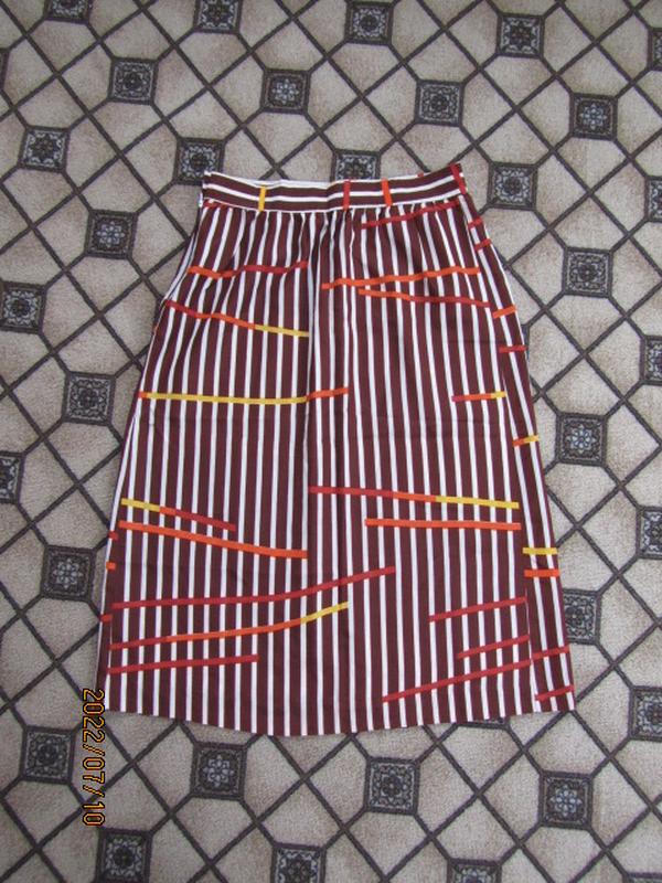 Літня стильна юбка, тканина не тягнеться та не просвічується. Заміри юбки: півобхват таліі 36 см, півобхват бедер 55 см, ширина по низу 62 см, довжина юбки 73 см, є шлиця довжиною 36 см. Стан ідеальний. Підійде на розмір М