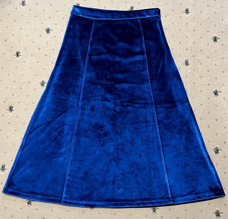 трапеція, велюр, колір електрик, заміри на вимогу, не підішла за розміром, але бірку зрізала, думала перешивати, бо дуже красива спідниця, та тепер передумала. Зомовляла на польскому сайті, відшита вона там, на високий зріст! На модели дуже гарно й гармонійно с білим худі вона була представлена та з білими чоботами 👍🏻