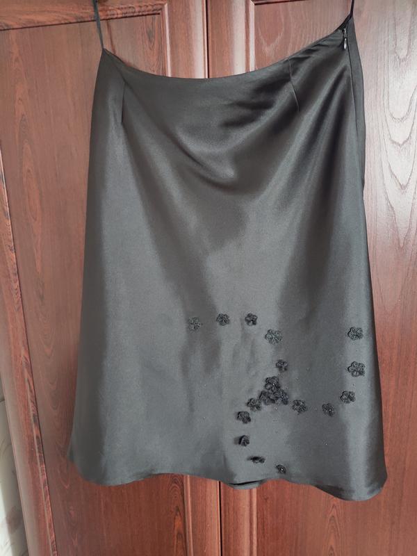 Чорна атласна спідничка. Довжина виробу 70 см обхват талії 88 см обхват бедер 104 см