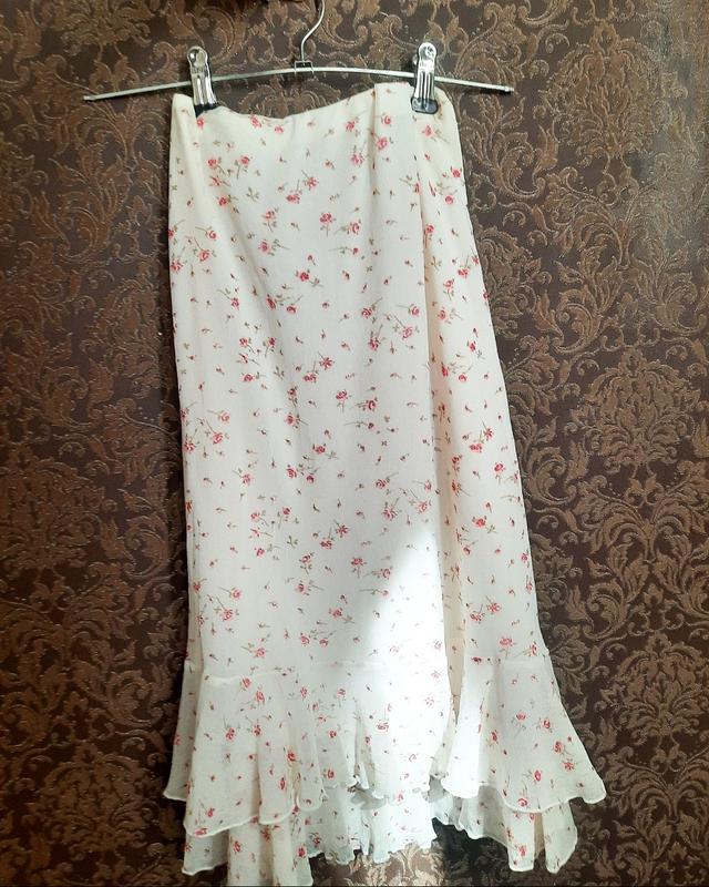 Спідниця біла з рожевими квітами