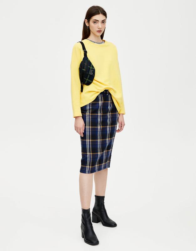 Стильна спідниця міді в клітинку Pull&Bear р. M нюанс - біля шва є зачіпка , цього не видно, бо накривається поясом - останнє фото