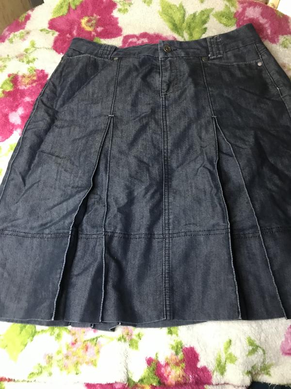 Джинсова спідниця у відмінному стані/ Розмір на бирці вказаний 38. Обхват пояса 78-79см, Не тягнеться. Довжина 56см. Пересилання по Україні.