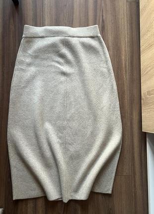 Дуже тепла трикотажна спідниця в бежевому кольорі . Добре тягнеться, щільна, довжина 76 см, ПОТ 38 см, ПОБ 50 см.