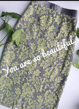 Шикарна спідничка з тонкого мережива, на поясі, на підкладці, застібка - блискавка