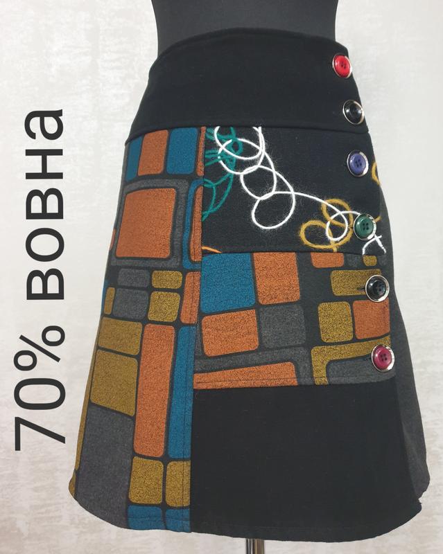 Ефектна та тепла вовняна спідниця від італійського виробника. Для пошиття використано щільні, товсті та теплі тканини -компаньйони сірого та чорного кольору, та тканини з кольоровим оздобленням. А-силует. Асиметрична застібка на великі різнокольорові ґудзики розташована спереду .Виріб на підкладці. Розмір S талія 38 см стегна 47см довжина виробу 47,5-48 см Буде ще багато фірмових речей. Підписуйтесь! Майте на увазі, що поки ви додаєте товар в ''обране'', хтось його вже купує. І ви можете пропустити свій шанс придбати річ, що сподобалася. Дешевше купувати відразу кілька речей-таким чином ви заощаджуєте на доставці. При купівлі п'яти і більше речей і оплаті на карту продавцю одразу-- доставка безкоштовна. Вдалих і приємних покупок!. 3.01.24