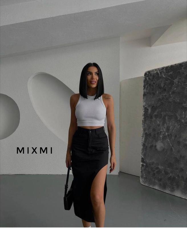 НОВИНКА🔥 Костюм Мод.5077 Ціна: 620 грн Розміри: 42-44, 44-46, 46-48 Тканина: майка рубчик дрібний Юбка джинс бенгалін