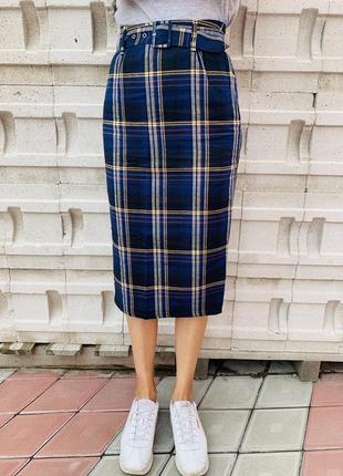 Юбка с высокой посадкой, ремешком, в клетку, зауженные к низу(трохи). Рост модели 170 см. Вещь новая, с биркой.