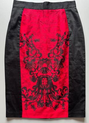 Ошатна спідниця олівець з червоною вставкою від Dorothy Perkins Розмір S ЗАМІРИ Напівобхват по поясу 38 см Напівобхват стегон 49 см Напівобхват внизу 44 см Довжина 67,5 см Розріз ззаду 24 см Склад: 97% коттон, 3% еластан Тканина трішки тягнеться, заміри надані у спокійному стані Нова