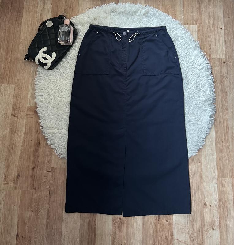 Стильна спідниця в спортивному стилі Висока посадка Талія на кулісках регулюється Спереду розріз Є кишені Стан ідеальний Заміри П.о.т-37-38 П.о.б-51 Довжина-81 Розріз-35