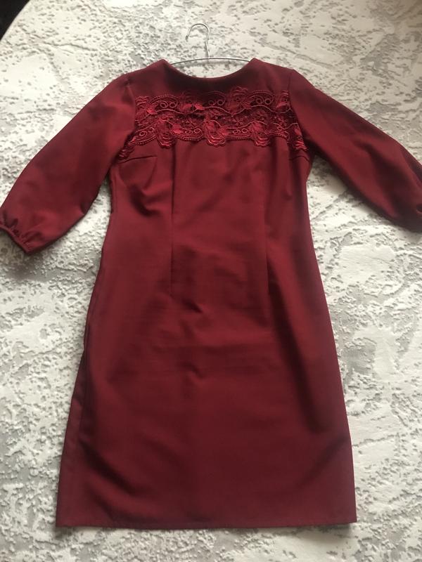 Плаття бордового кольору. На грудях вставка із гіп‘юру. Стан ідеальний. Одягала один раз Розмір 42