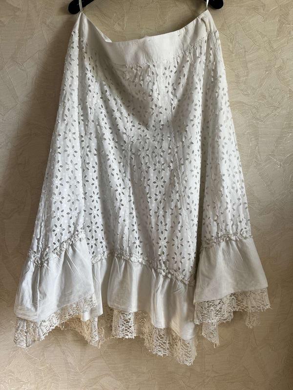 Спідниця шестиклинка. По низу кружево. Має гарний вишуканий вигляд. Як недолік - на поясі два маленьких п‘ятнишка. Заміри: Пояс -46; довжина-78;