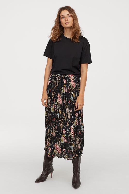 Рекомендую перед замовленням ознайомитись з інформацією в розділі "Про мене" Це займе декілька хвилин вашого часу, проте там багато корисної інформації) гофрована спідниця міді від h&m в колаборації з GP&J Baker стан ідеальний, до нового розмір по бірці XS, сяде і на S/M, орієнтуйтесь по замірах довжина 79 см, пот 32-39 см, поб 50 см 100% поліестер