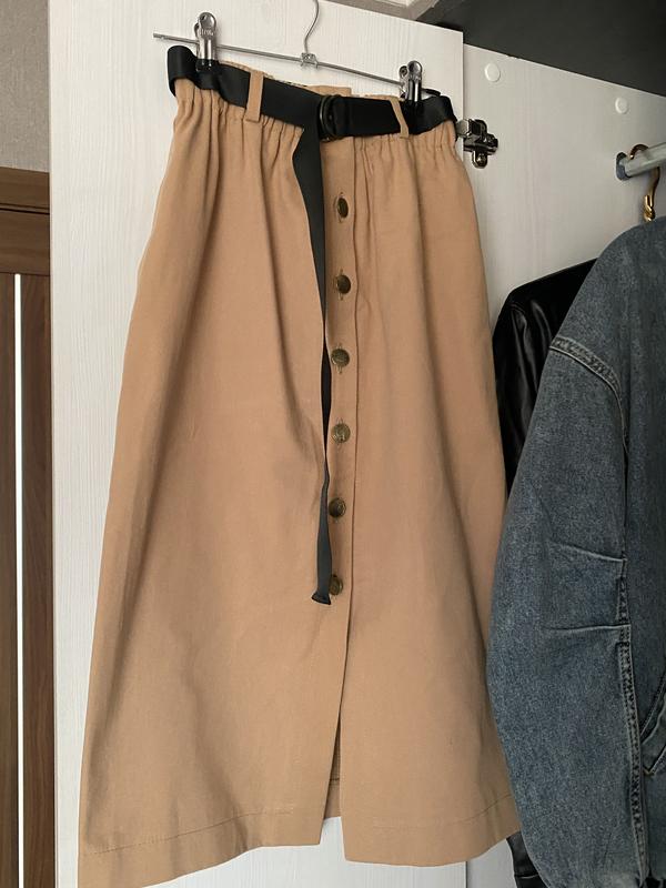 Розмір S-М, довжина 68 см, талія на резинці, також регулюється ремінцем Стан б/у, одягалась 1-2 разів