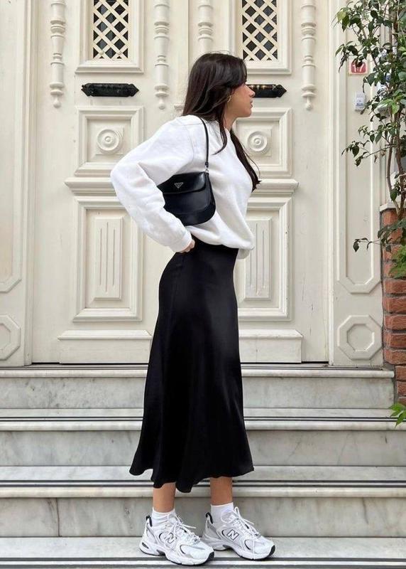 Шикарні атласні спідниці. Мають міді довжину Підійдуть під будь який образ. З кедами або з підборами. Актуальні класичні кольори. Матеріал - атлас. Розмір - 42-44, 46-48, 50-52. Колір - чорний, беж, блакитний.