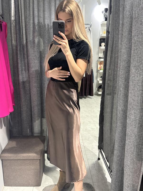 коричнева шовкова спідниця, люкс якості, ідеальна посадка та довжина