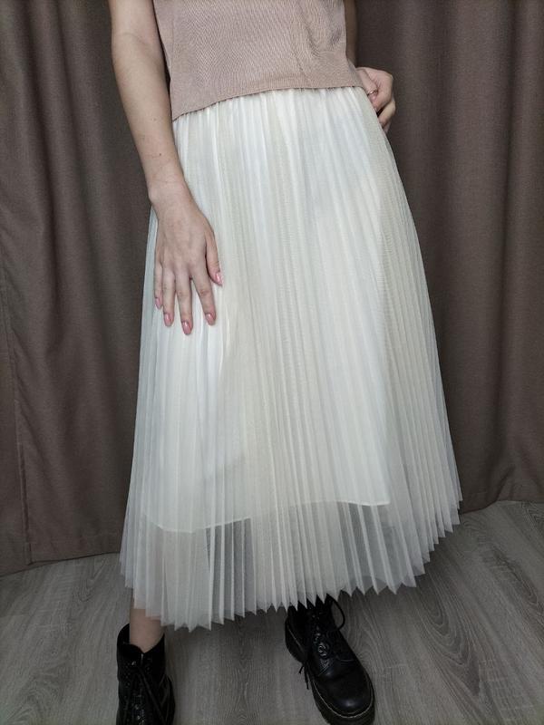 Спідниця пліссе Розмір єдиний 42-46 Тканина сітка, пояс на резинці Виробництво фабричний Китай Талія 60 см + тягнеться до 90 см Довжина 68 см Об до 116 см