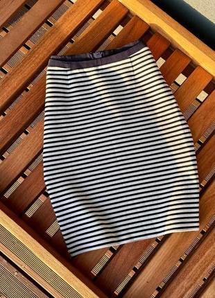 Якісна спідниця олівець срібна в темно-синю смужку. Шикарно сяде по фігурі,ідеально тягнеться.
