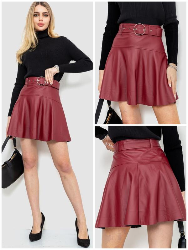 Юбка из экокожи, цвет бордовый. Размерная сетка на последнем фото.