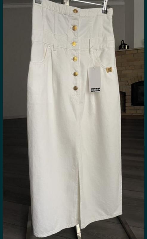 Біла джинсова спідниця міді з високою посадкою Якість люкс Розміри м, л