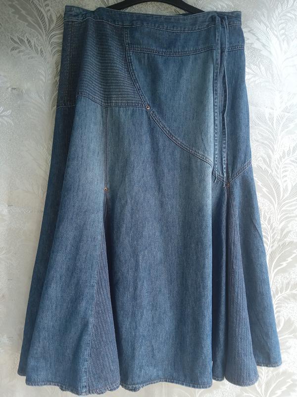 Джинсова спідниця з вставками р.М(46).талія 42 .бедра 52 вільно. довжина 86.