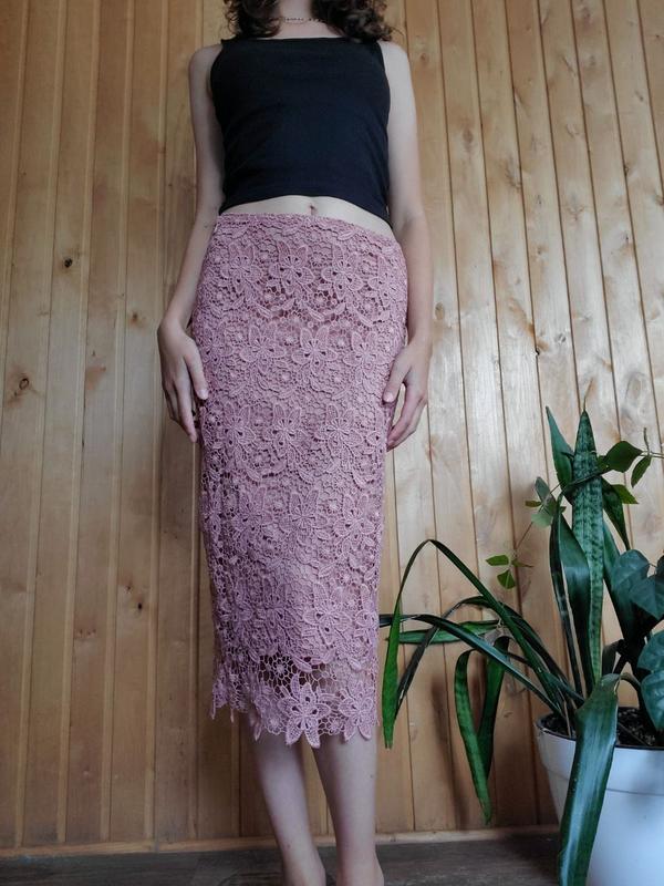 Ніжна пудрова міді спідниця з мереживом від atmosphere Заміри Півобхват талії - 35 см Півобхват стегон - 41 см Довжина - 70 см