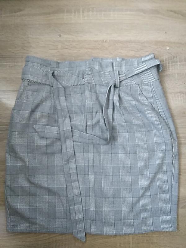 Спідниця, розмір Л, висока посадка, пояс зав'язується, кишені спереду діючі, ззаду обманки. Тканина приємна на дотик, одягала 1 раз.