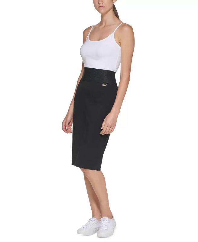 Дуже гарна та якісна спідниця Calvin Klein. Щільний трикотаж на широкій гумці сяде ідеально. Ззаду розріз.